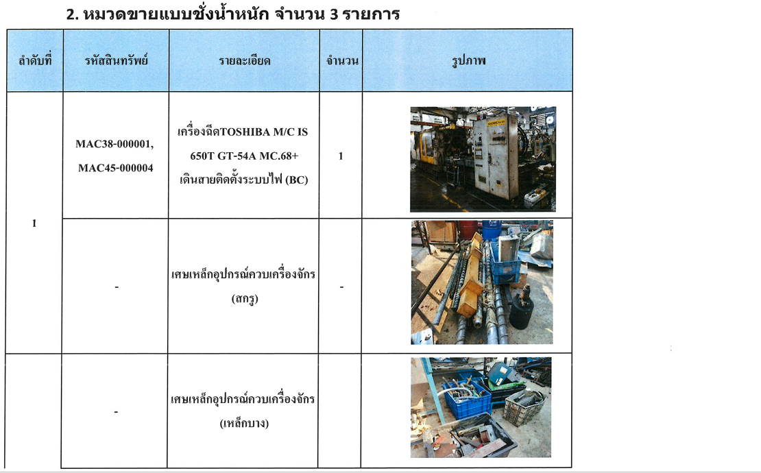 2. รายการขายทอดตลาดทรัพย์สินและเศษเหล็กที่ไม่ใช้แล้ว แบ่งเป็น 3 หมวดดังนี้ .-