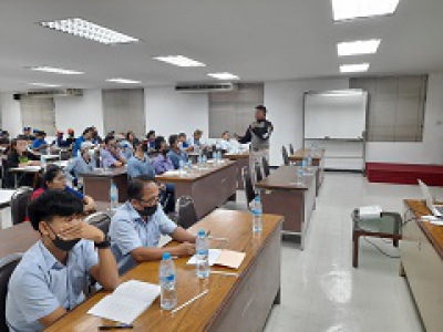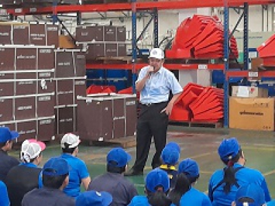 กรรมการผู้จัดการ ประชุมโรงงานร่วมกับพนักงานที่ปฏิบัติงาน ณ เขตบางปะกง
